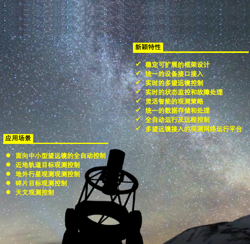 望远镜远程自动控制系统(RACS)是为碎片观测、近地目标观测、天文观测等望远镜设计的远程自动控制系统。特别是空间碎片观测望远镜,需要在世界范围内部署,建立大面积、大范围、连续监测的空间目标和碎片监测系统。